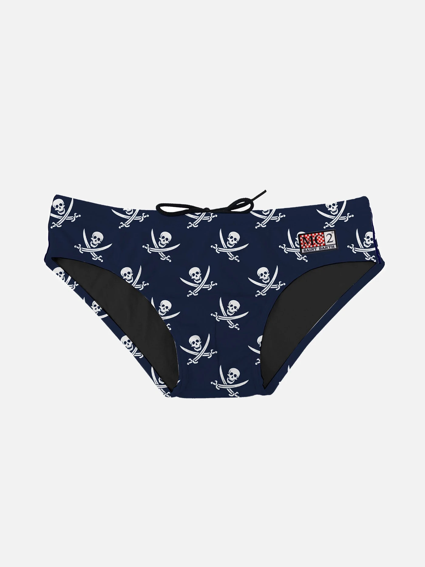 Blue Navy Boy Swim Briefs Pirates Micro Print
