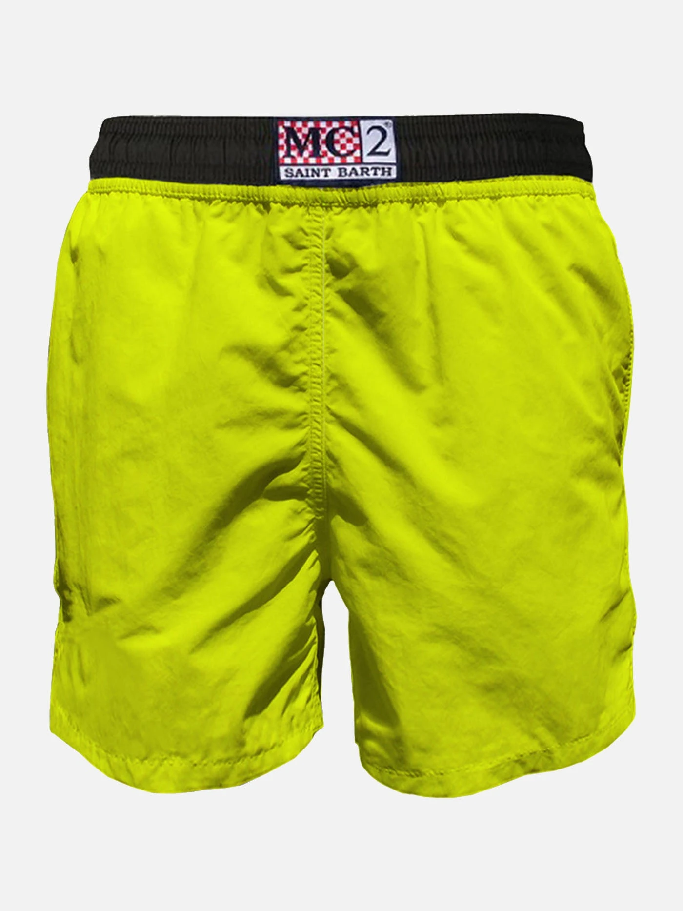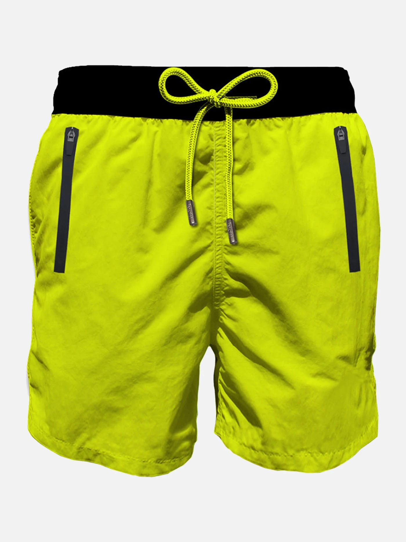 Fluo Yellow Light Fabric Zipped Swim Shorts