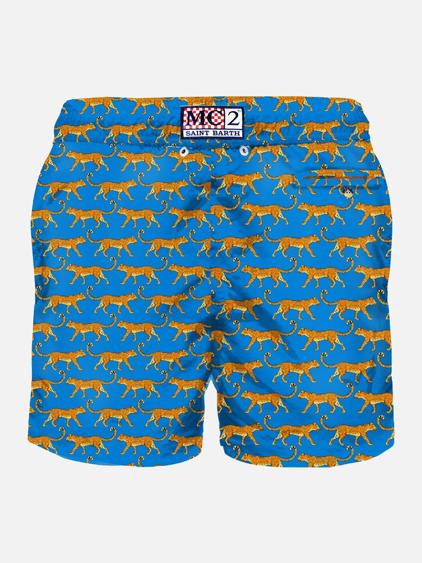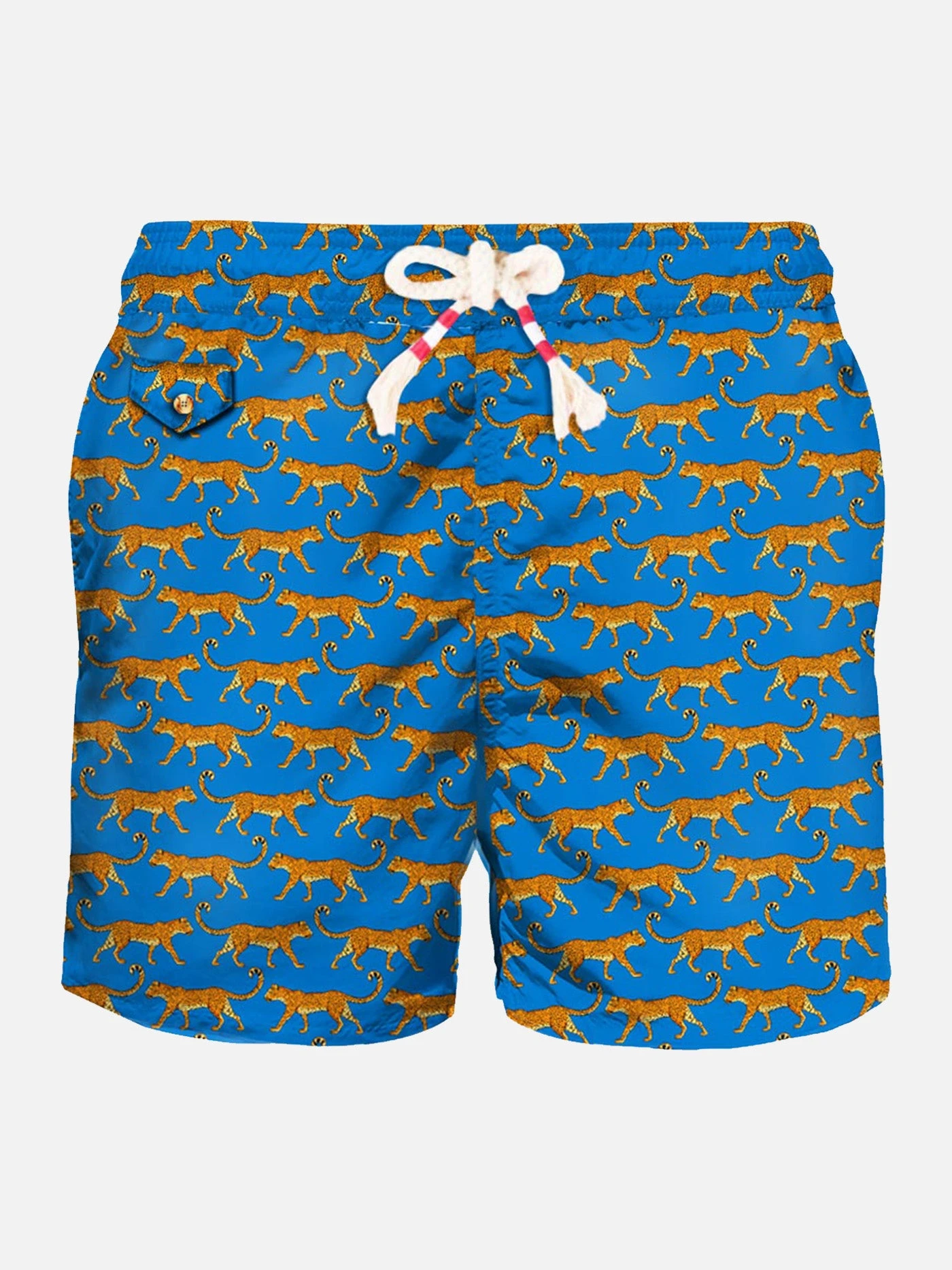 MC2 Saint Barth man’s classic swim short, micro wild print, ultra light fabric, quick drying, mid-lenght, light net lining, elasticated waistband, drawstring fastening, front and back pocket with button.