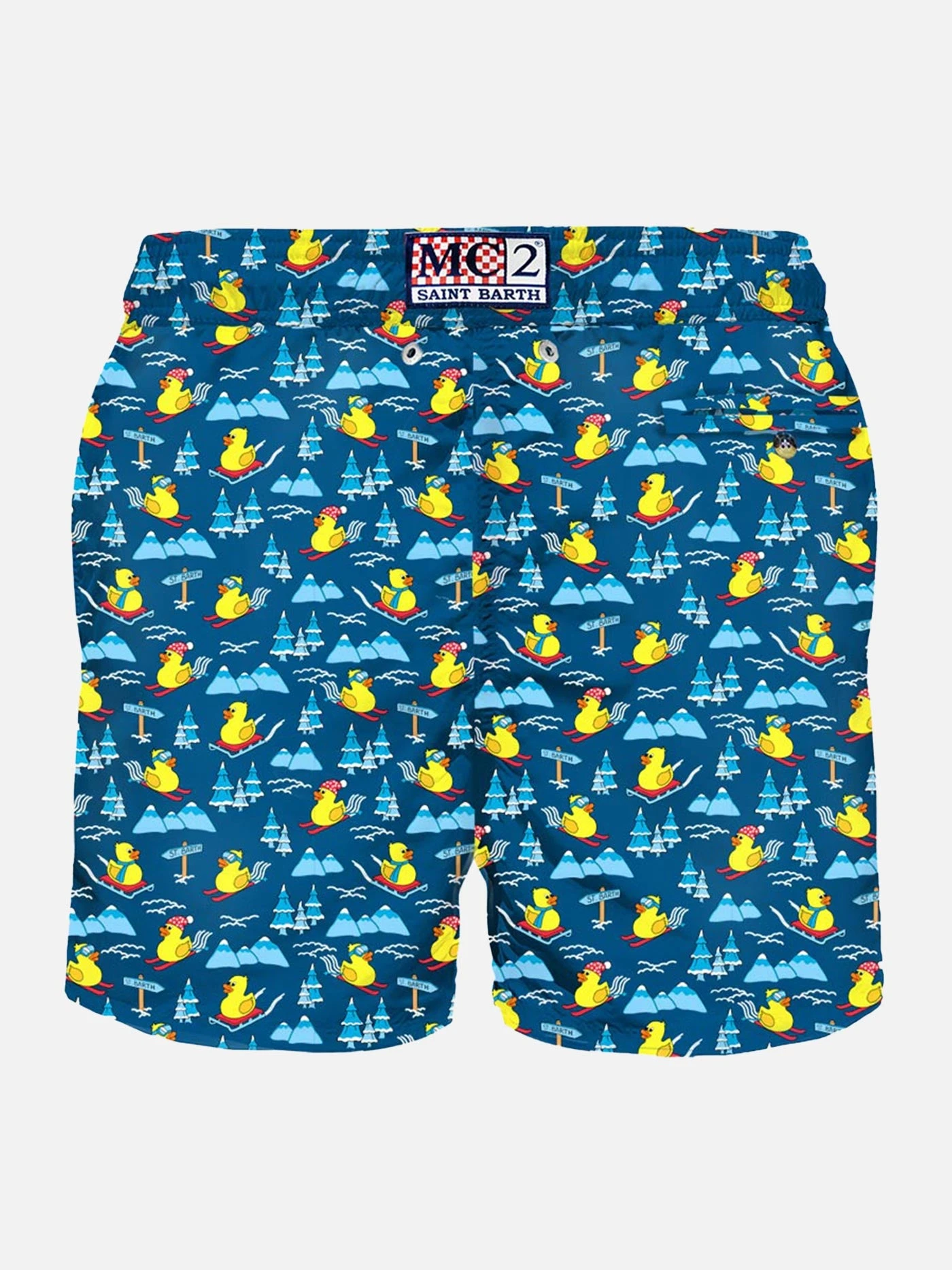 Micro skying ducky all over print on blue background