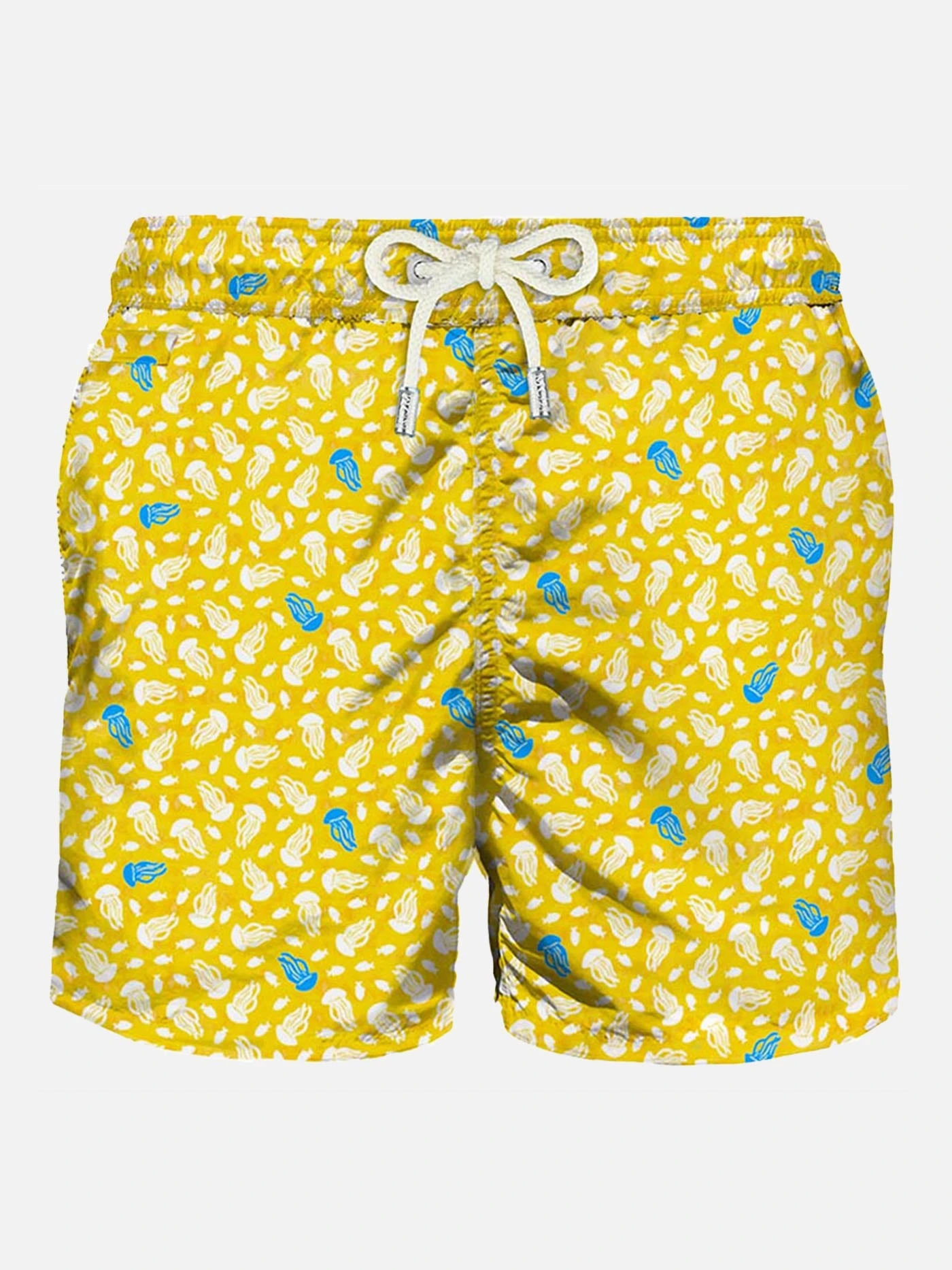 MC2 Saint Barth man’s swim shorts, micro jellyfishes all over print on yellow
