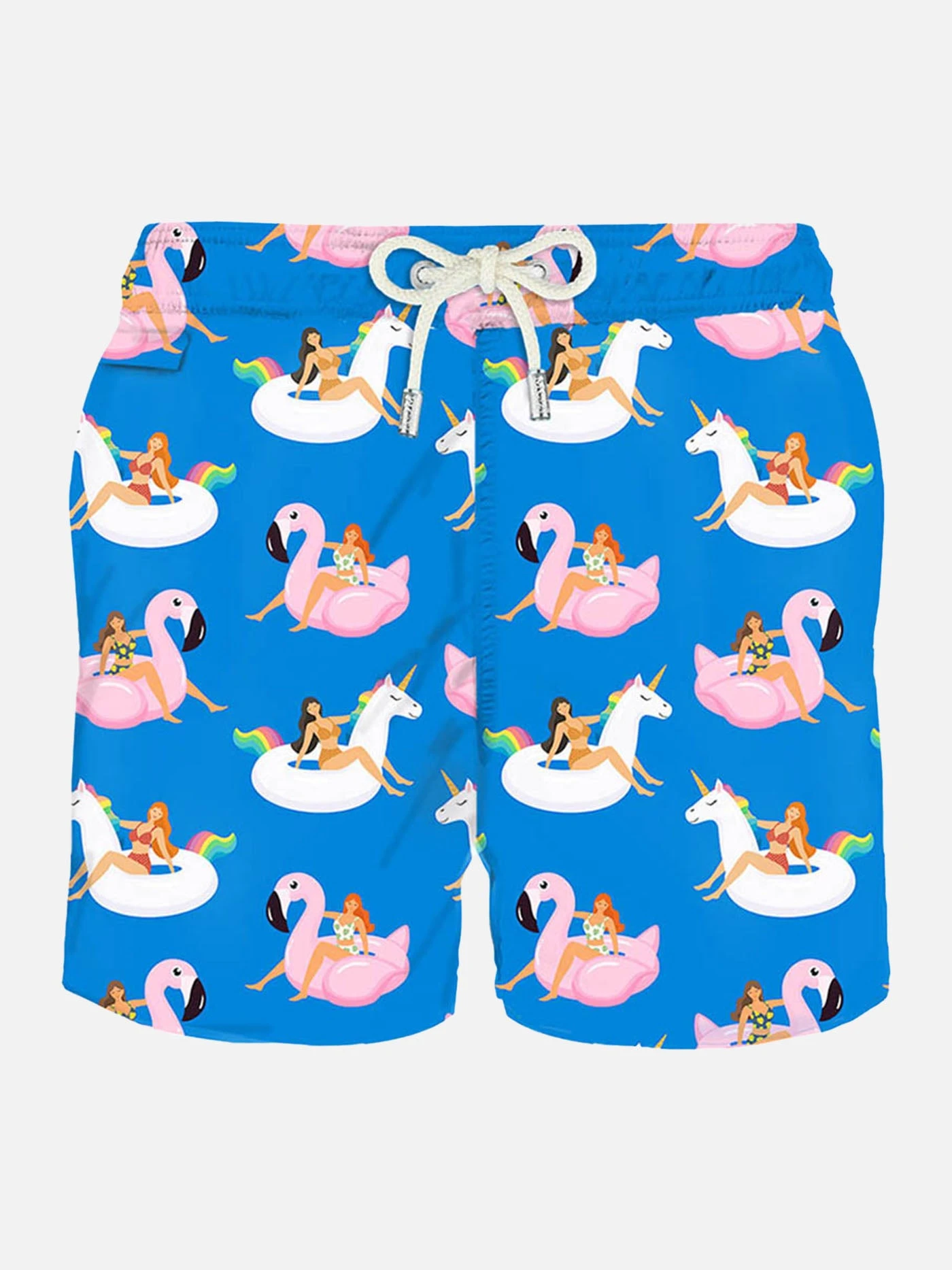 Man Light Fabric Swim Shorts With Summer Girls Print