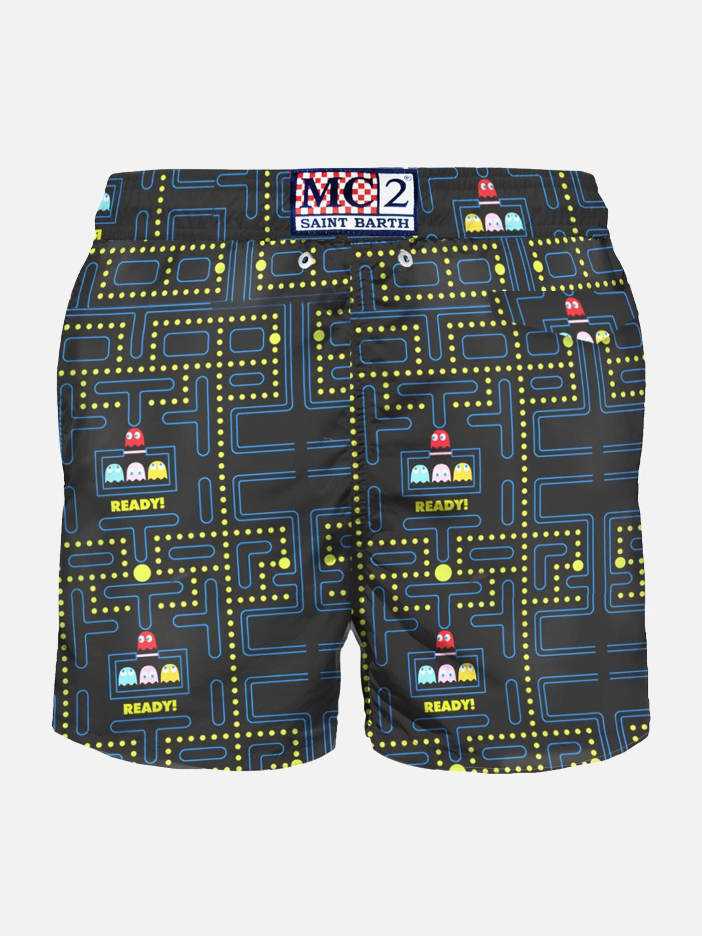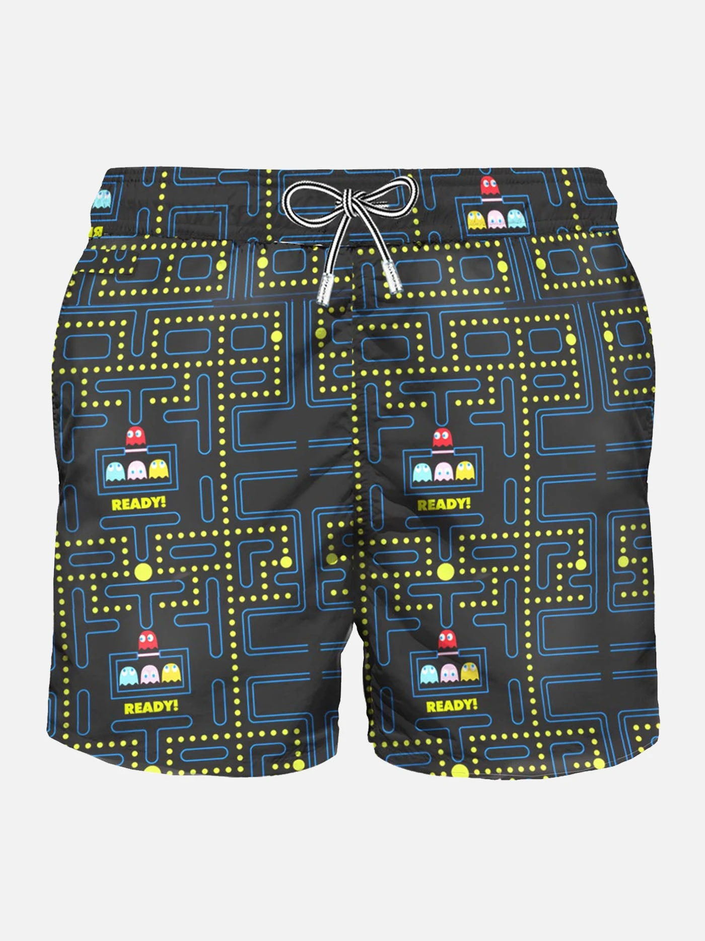 Ultraweight swim trunk, micro whale all over print, Quick drying, mid-lenght, regular fit, inside ergonomic brief, drawcord closure, backside pocket with magnetic closure. The swim trunk can be folded into the back pocket turning into a perfect travel pouch.