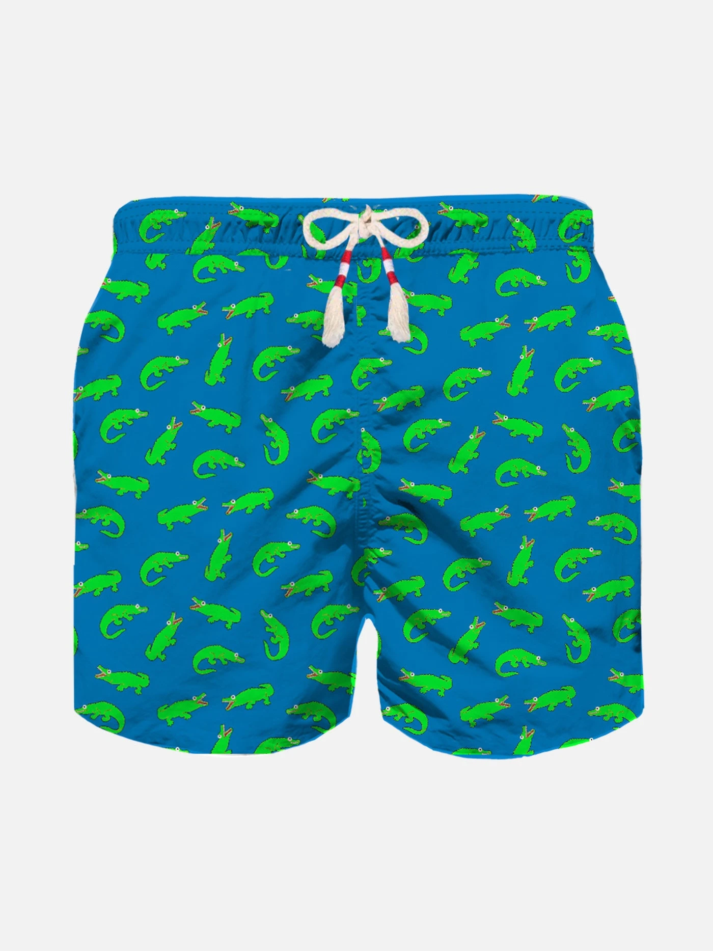 MC2 Saint Barth Boy Bluette Swim Shorts With Green Alligator Print