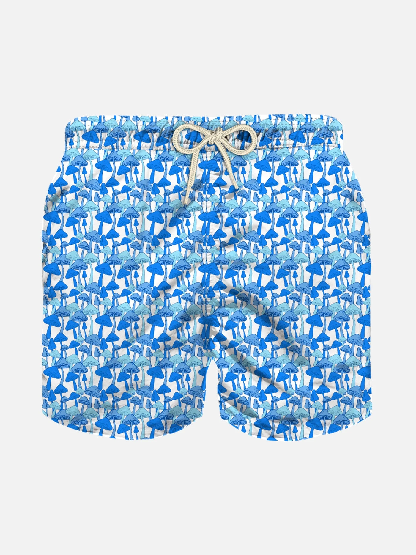 MC2 Saint Barth Boy Light Fabric Swim Shorts With Light Blue Mushrooms Print