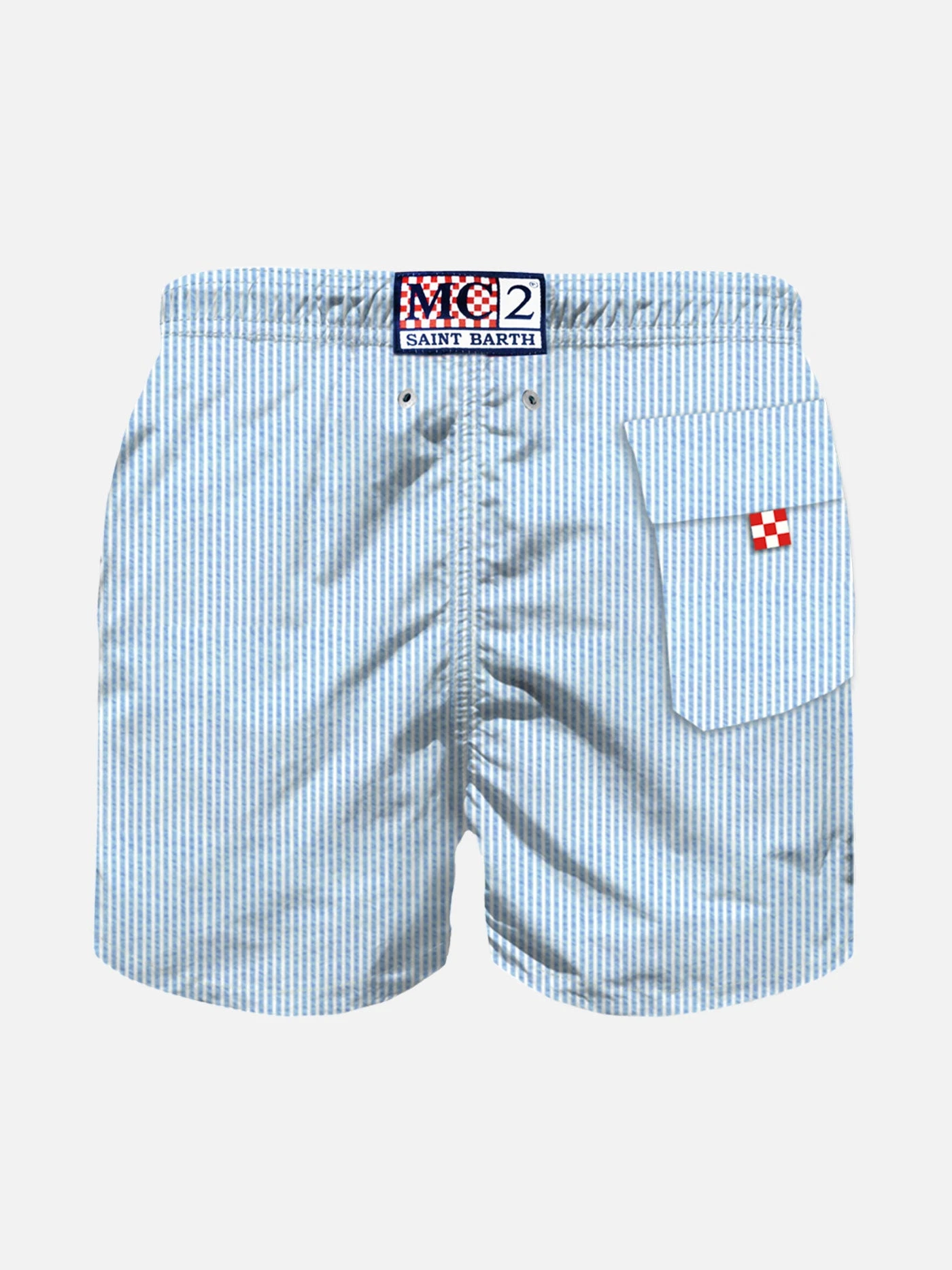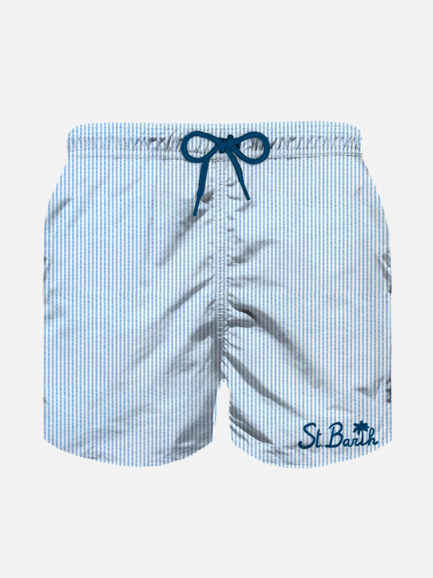 MC2 Saint Barth Boy Seersucker Swim Shorts With Striped Print