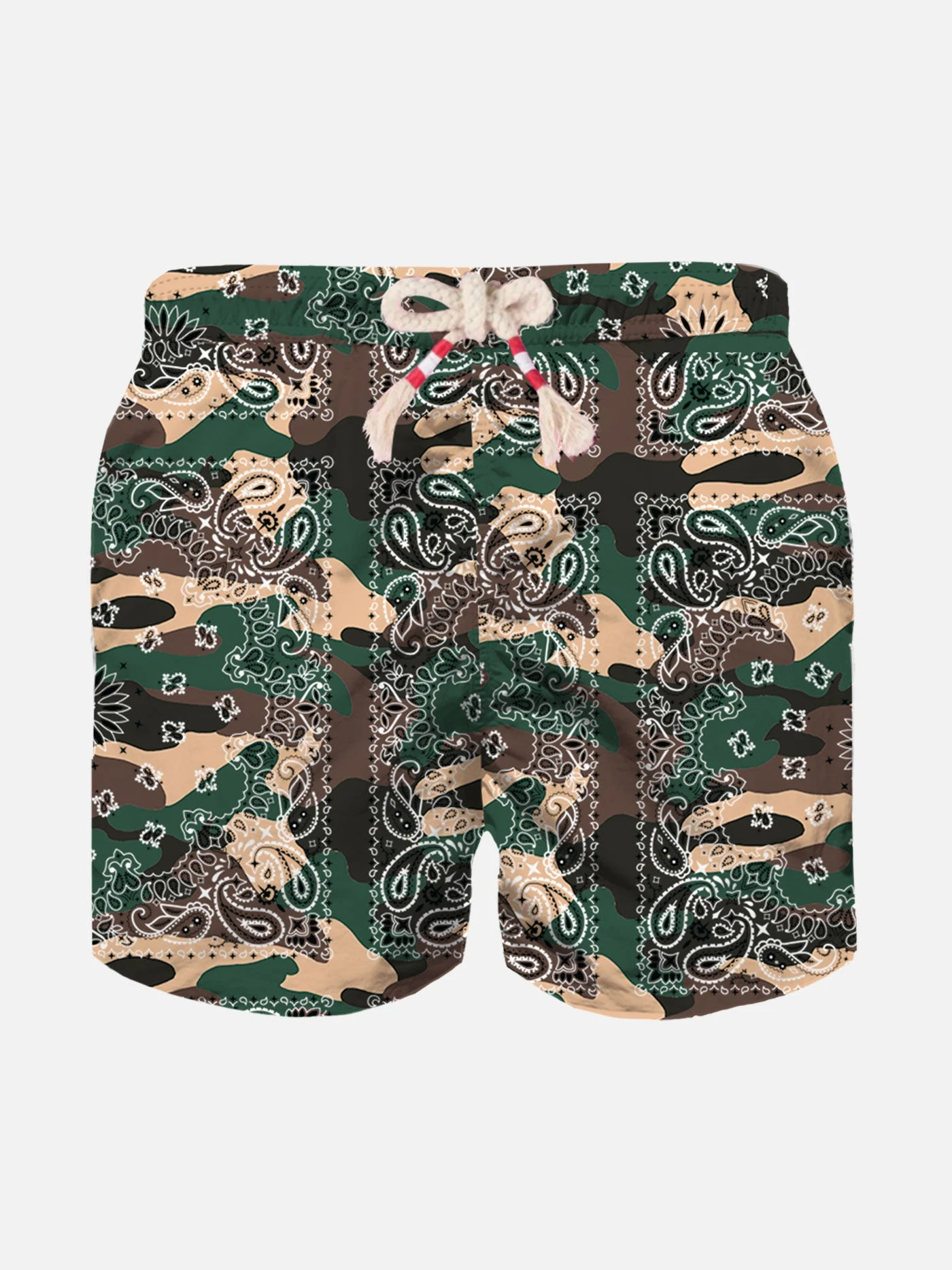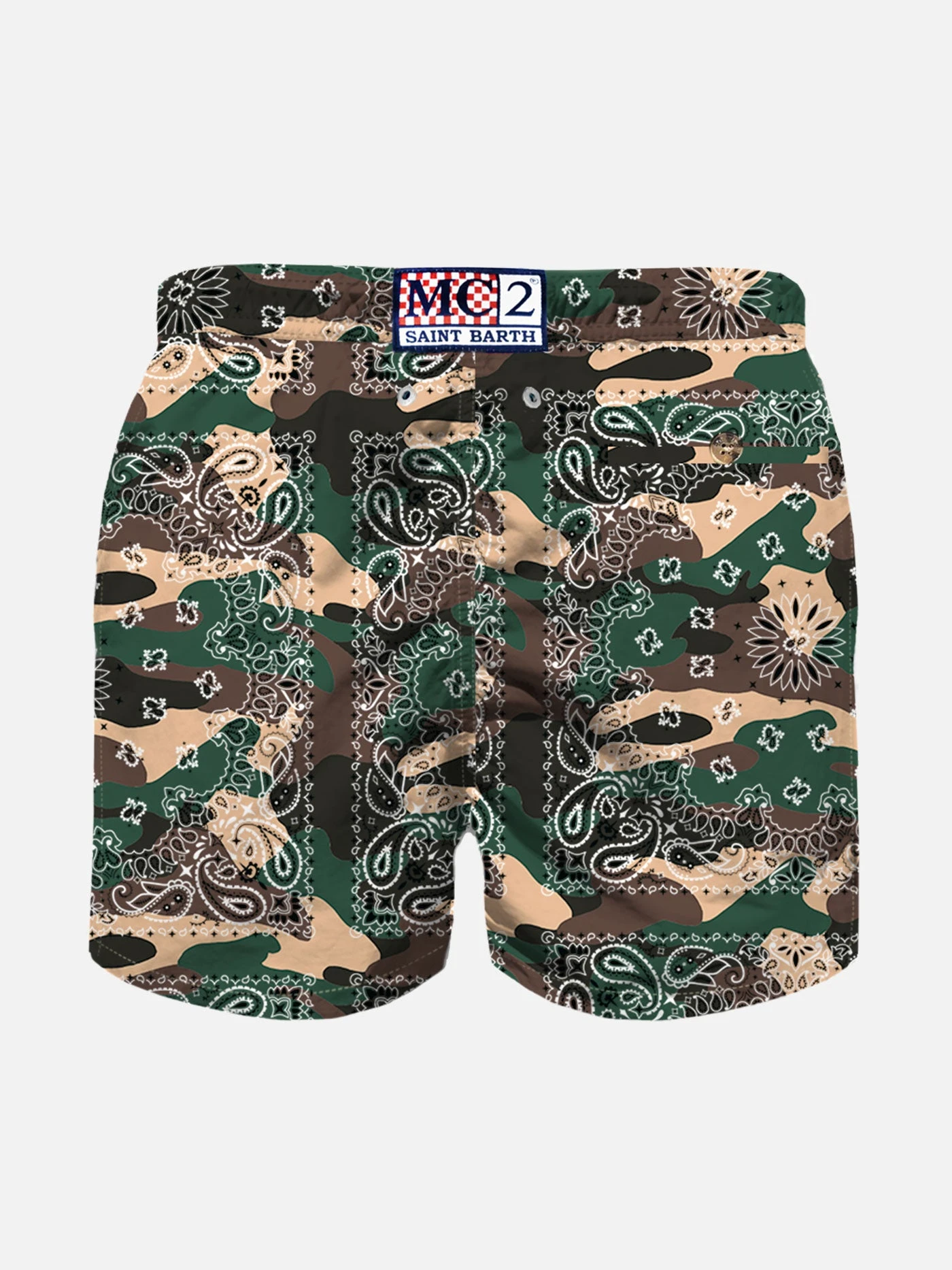 MC2 Saint Barth Boy Swim Shorts With Camouflage Bandanna Print