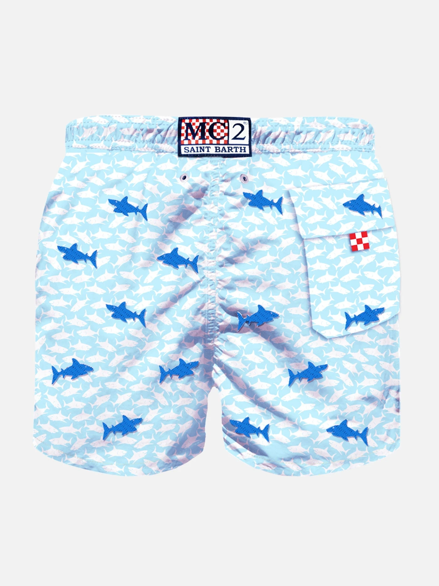 MC2 Saint Barth Boy Swim Shorts With Embroidered Sharks
