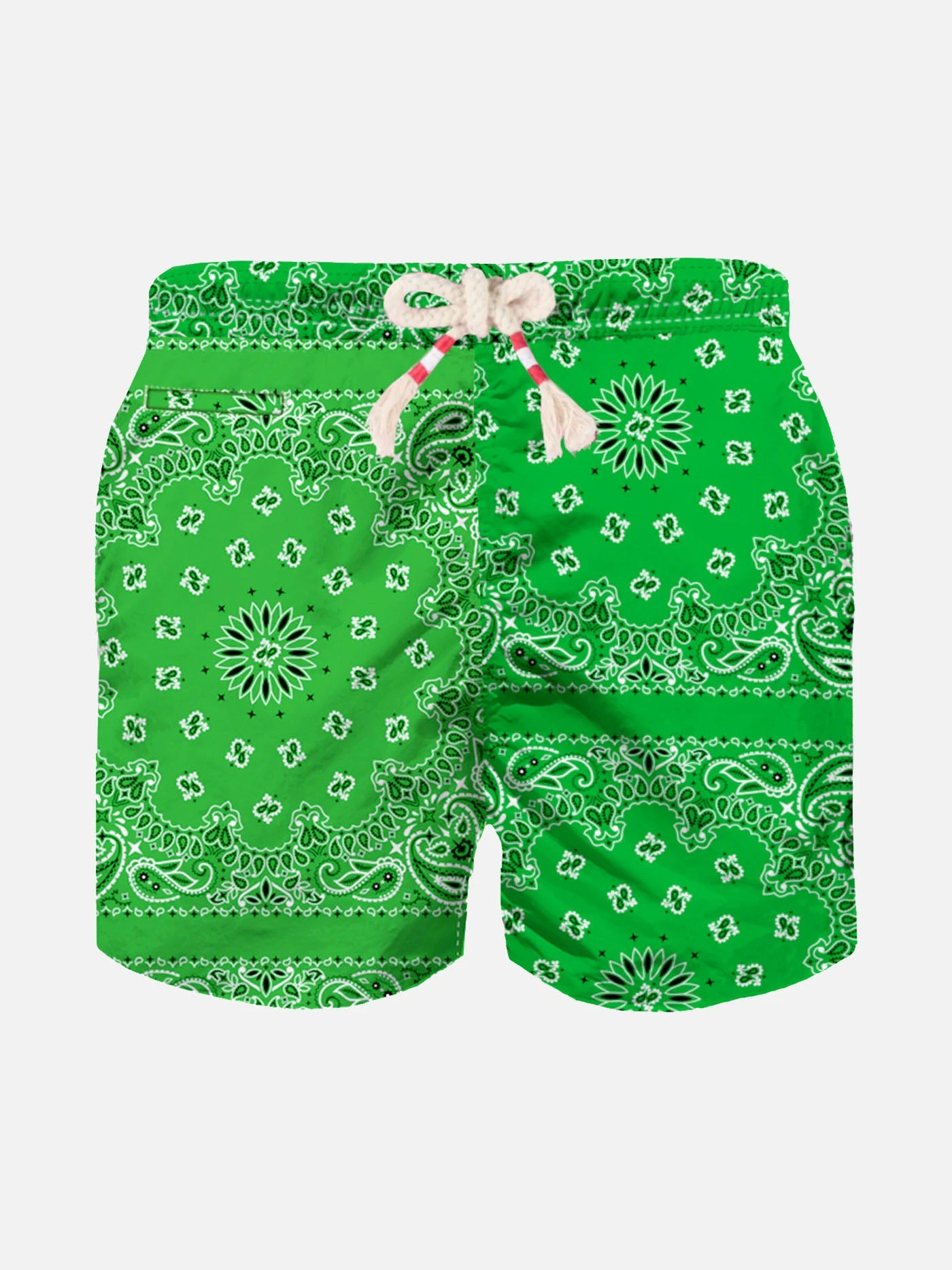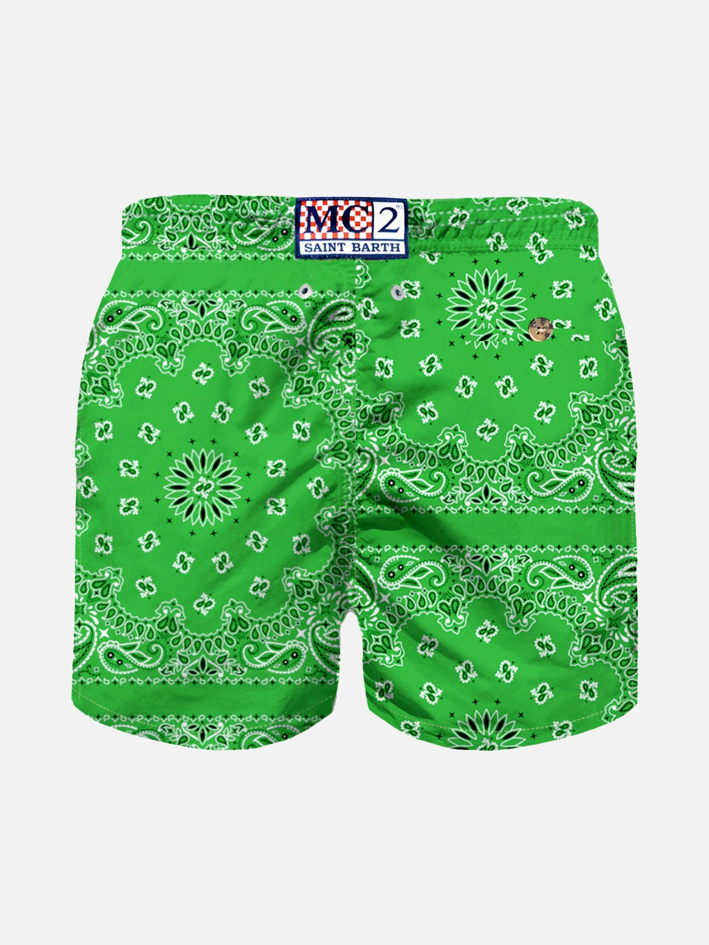 MC2 Saint Barth Boy Swim Shorts With Green Bandanna Print