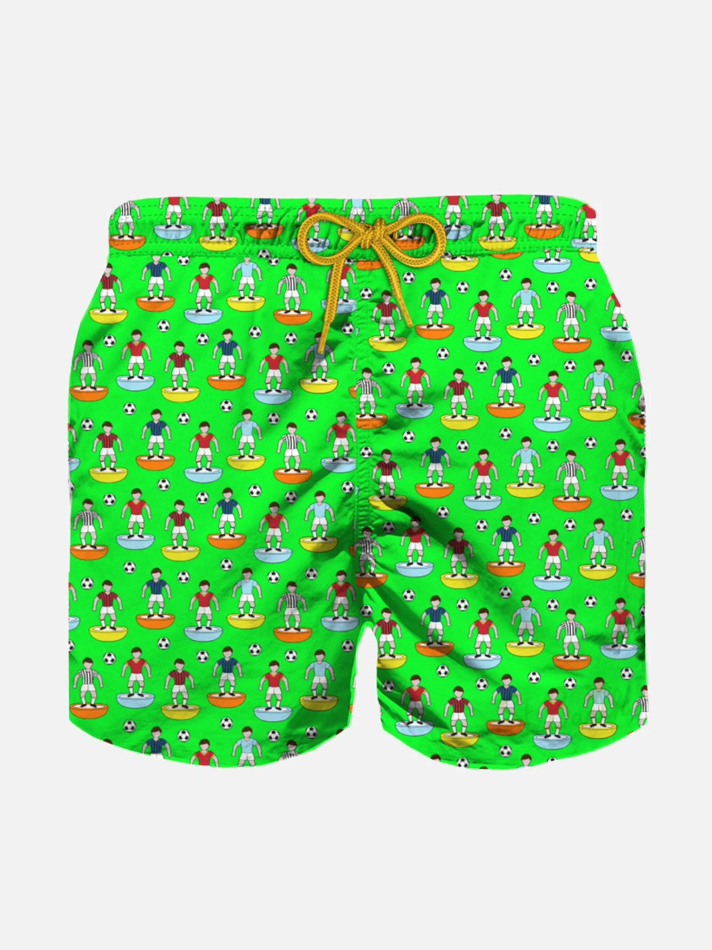 MC2 Saint Barth Boy Swim Shorts With Multicolor Football Players