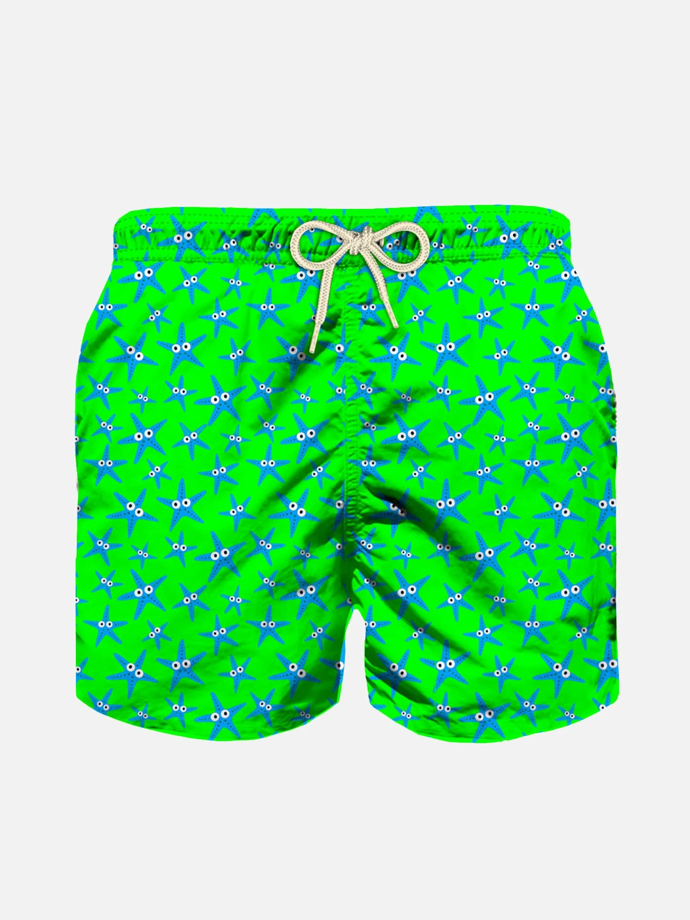 Light blue starfish all over print on fluo green background