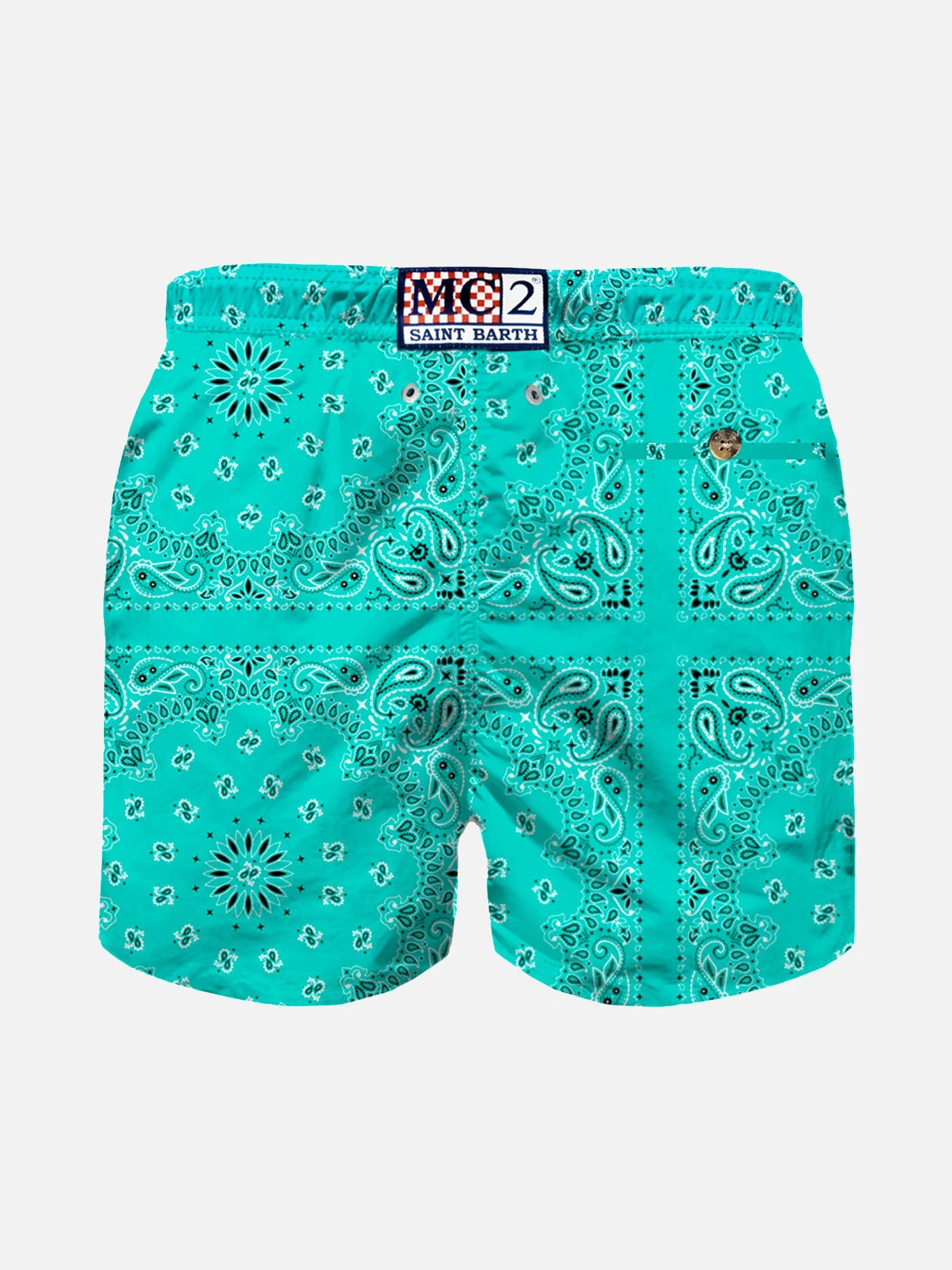 MC2 Saint Barth Boy Swim Shorts With Water Green Bandanna Print