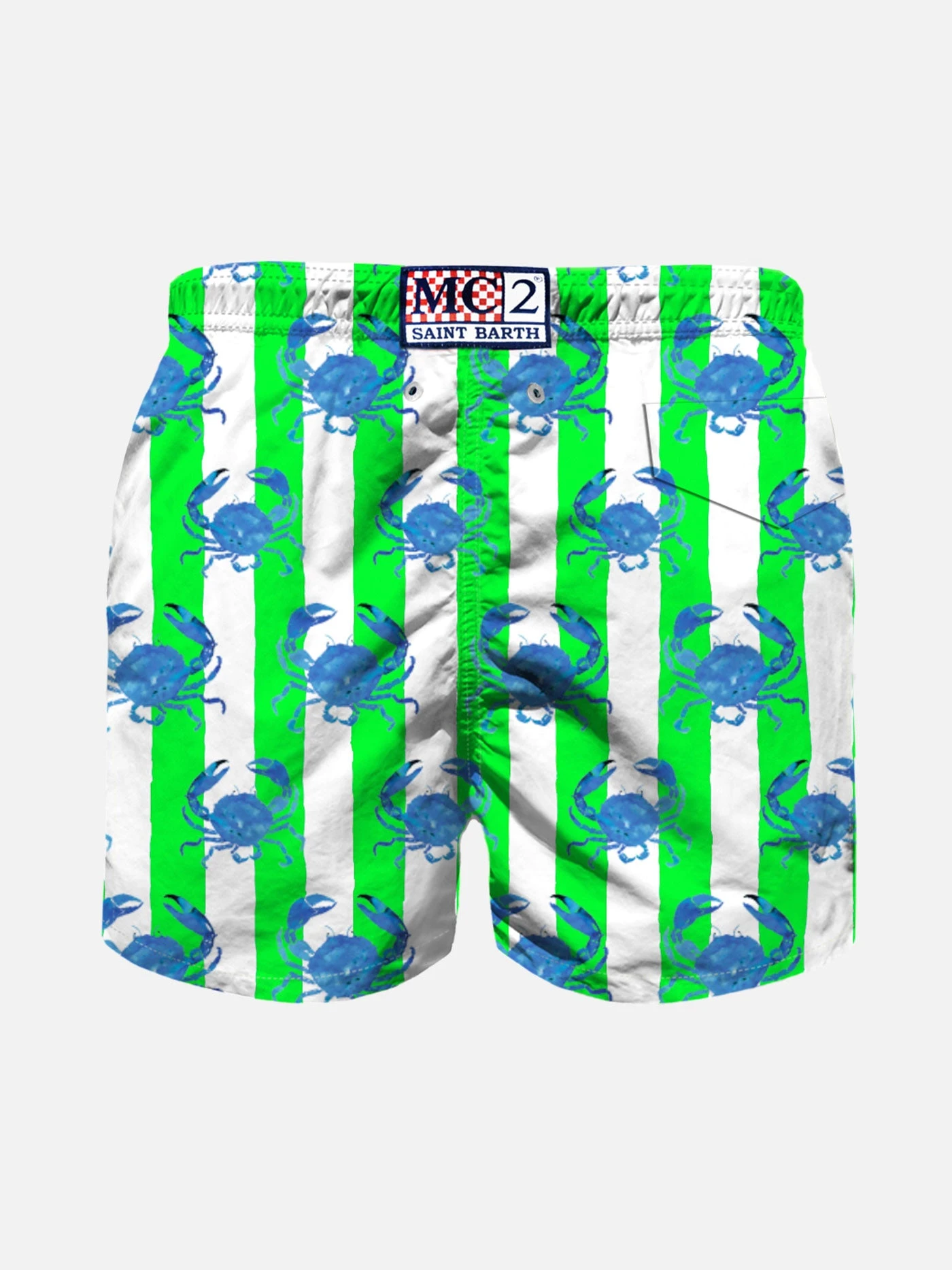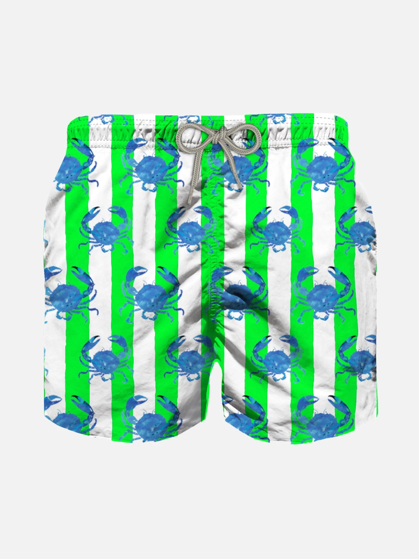 MC2 Saint Barth Boy Swim Shorts With White And Green Stripes And Crabs Print
