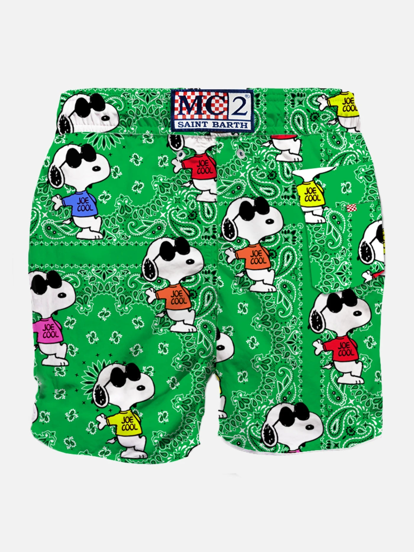 MC2 Saint Barth Man Classic Swim Shorts With Snoopy On Green Bandanna Pattern | SNOOPY – PEANUTS™ SPECIAL EDITION