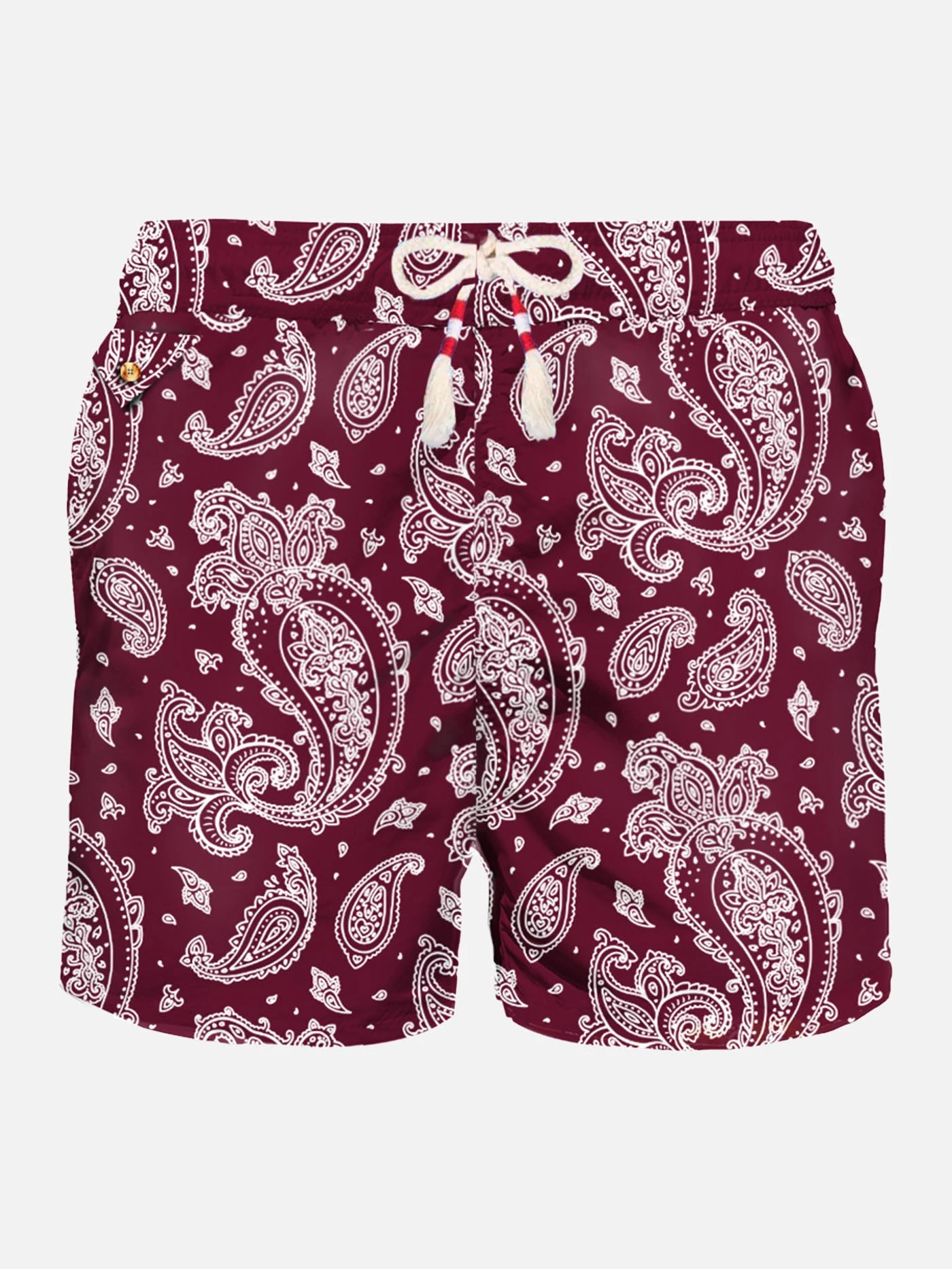 MC2 Saint Barth Man Light Fabric Swim Shorts With Burgundy Paisley Print