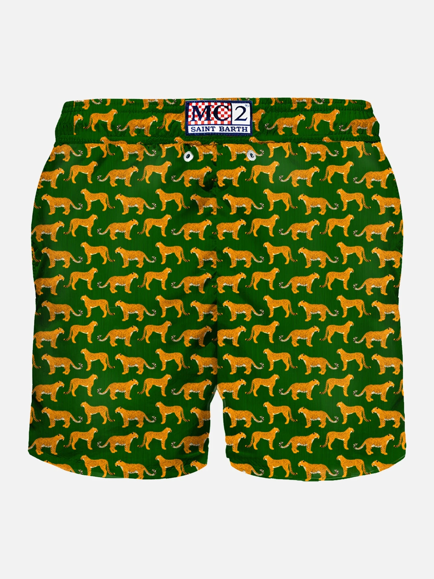 MC2 Saint Barth Man Light Fabric Swim Shorts With Cheetah Print