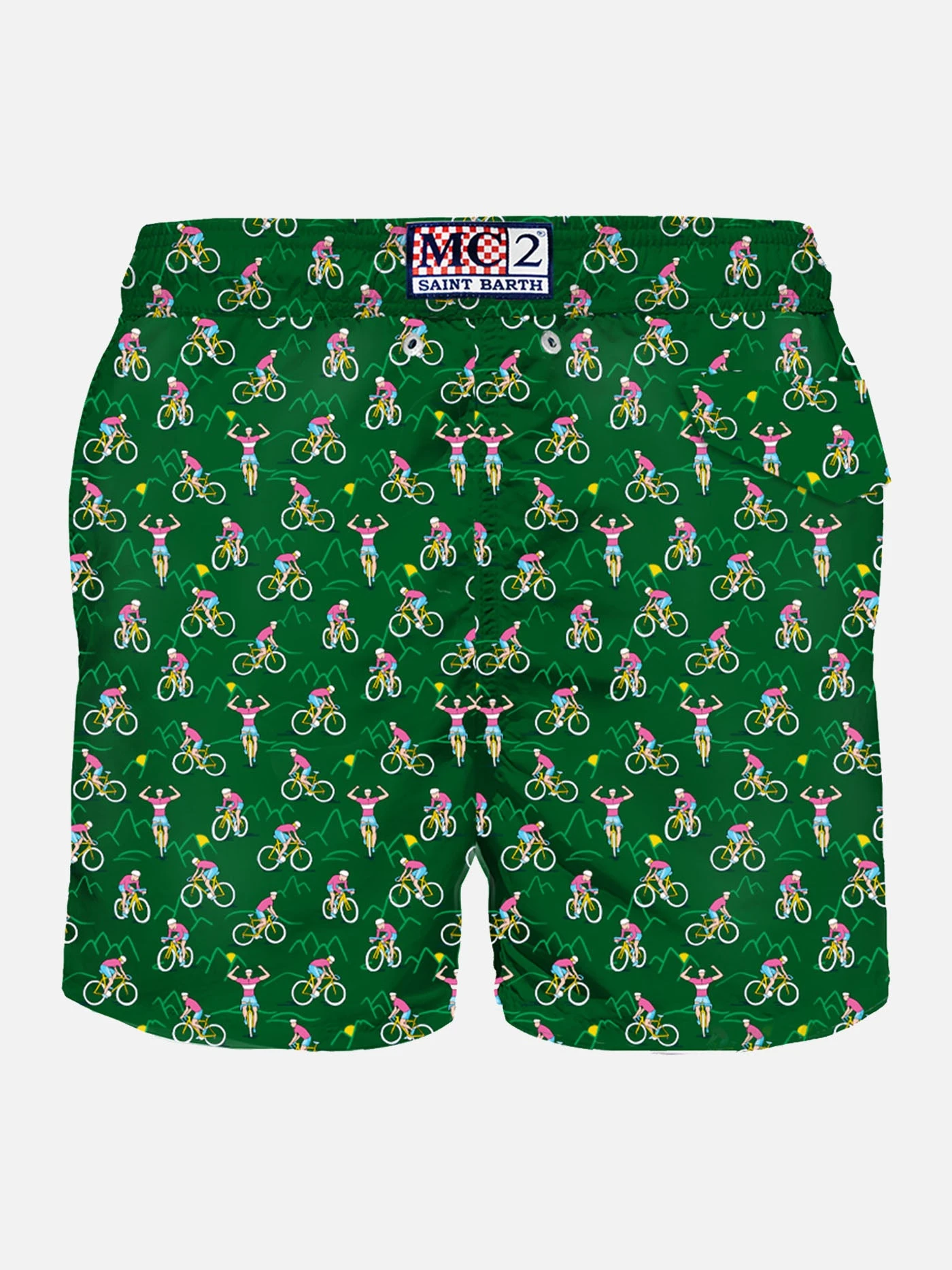 MC2 Saint Barth Man Light Fabric Swim Shorts With Cyclist Print