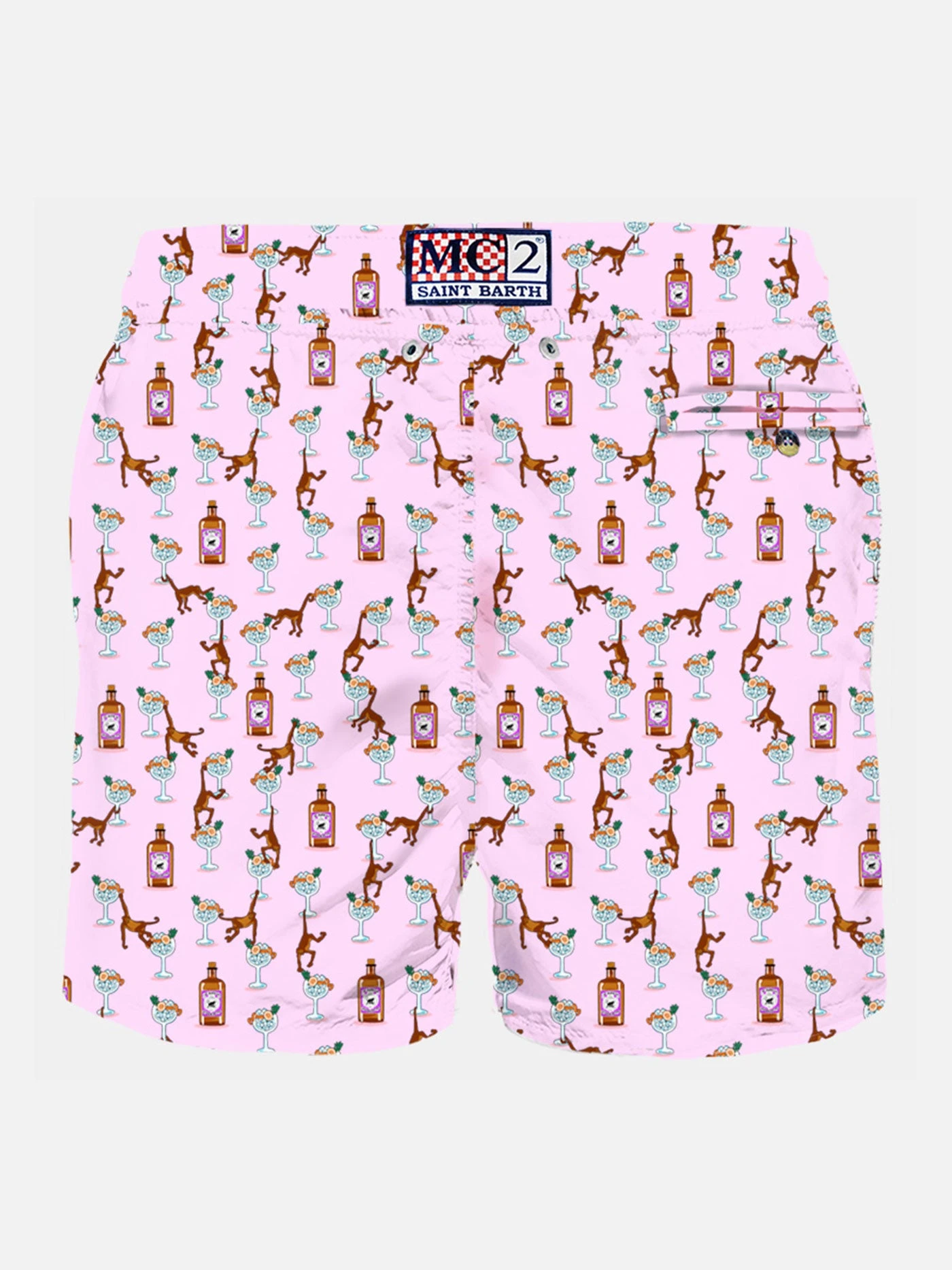MC2 Saint Barth Man Light Fabric Swim Shorts With Gin And Monkey Print