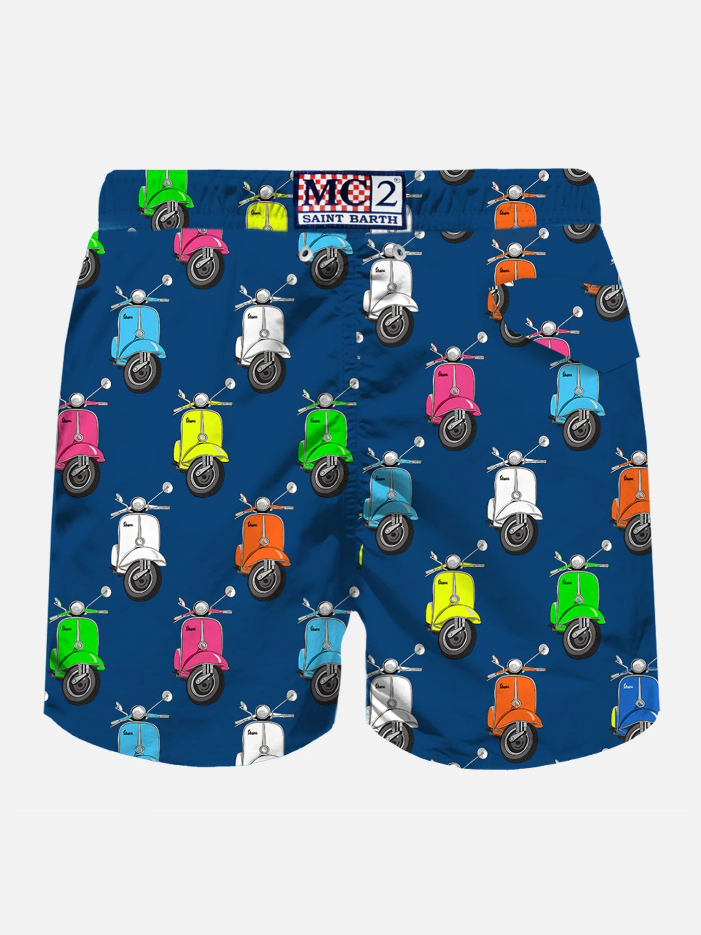 MC2 Saint Barth Man Light Fabric Swim Shorts With Multicolor Vespa Print | Vespa® Special Edition