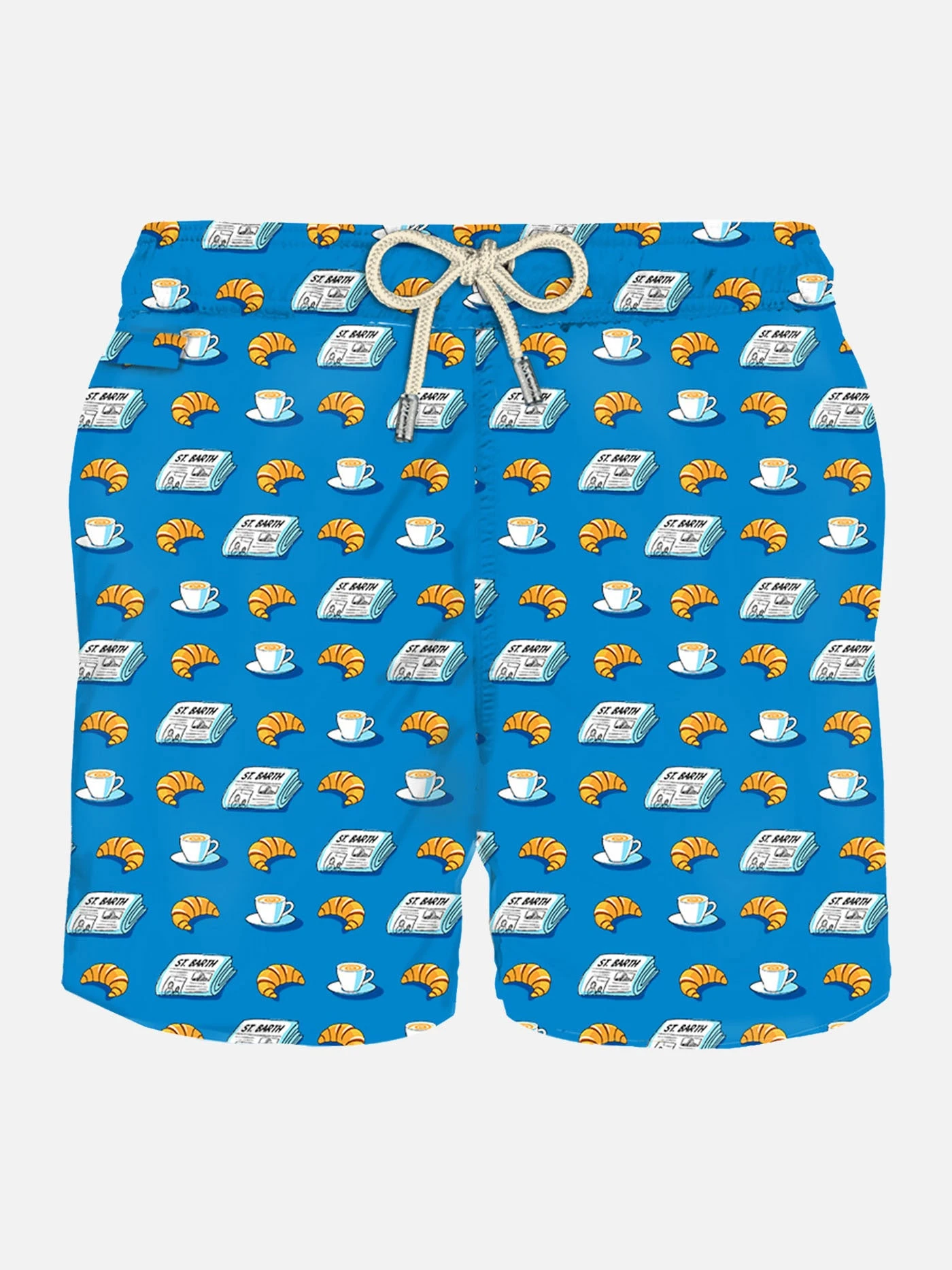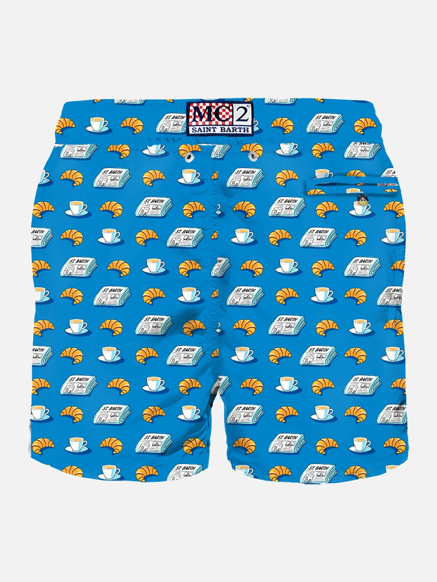 MC2 Saint Barth Man Light Fabric Swim Shorts With Newspaper And Croissant Print