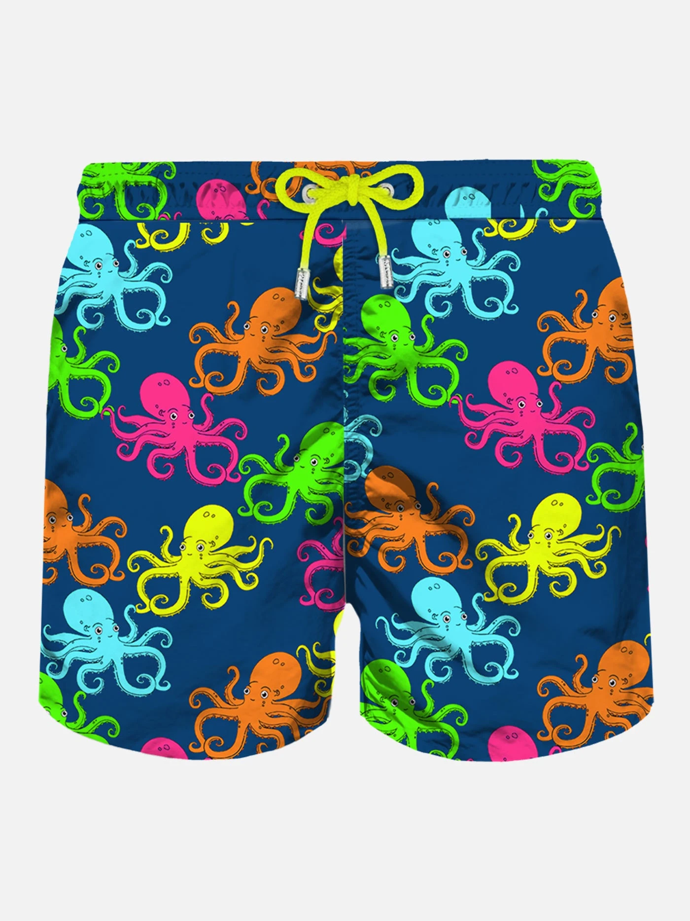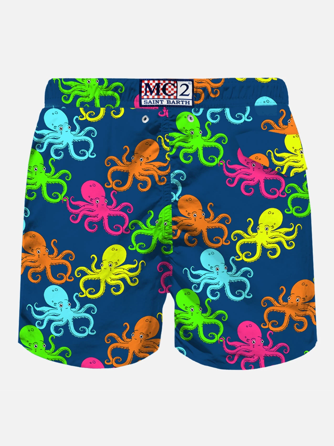 MC2 Saint Barth Man Light Fabric Swim Shorts With Octopus Print