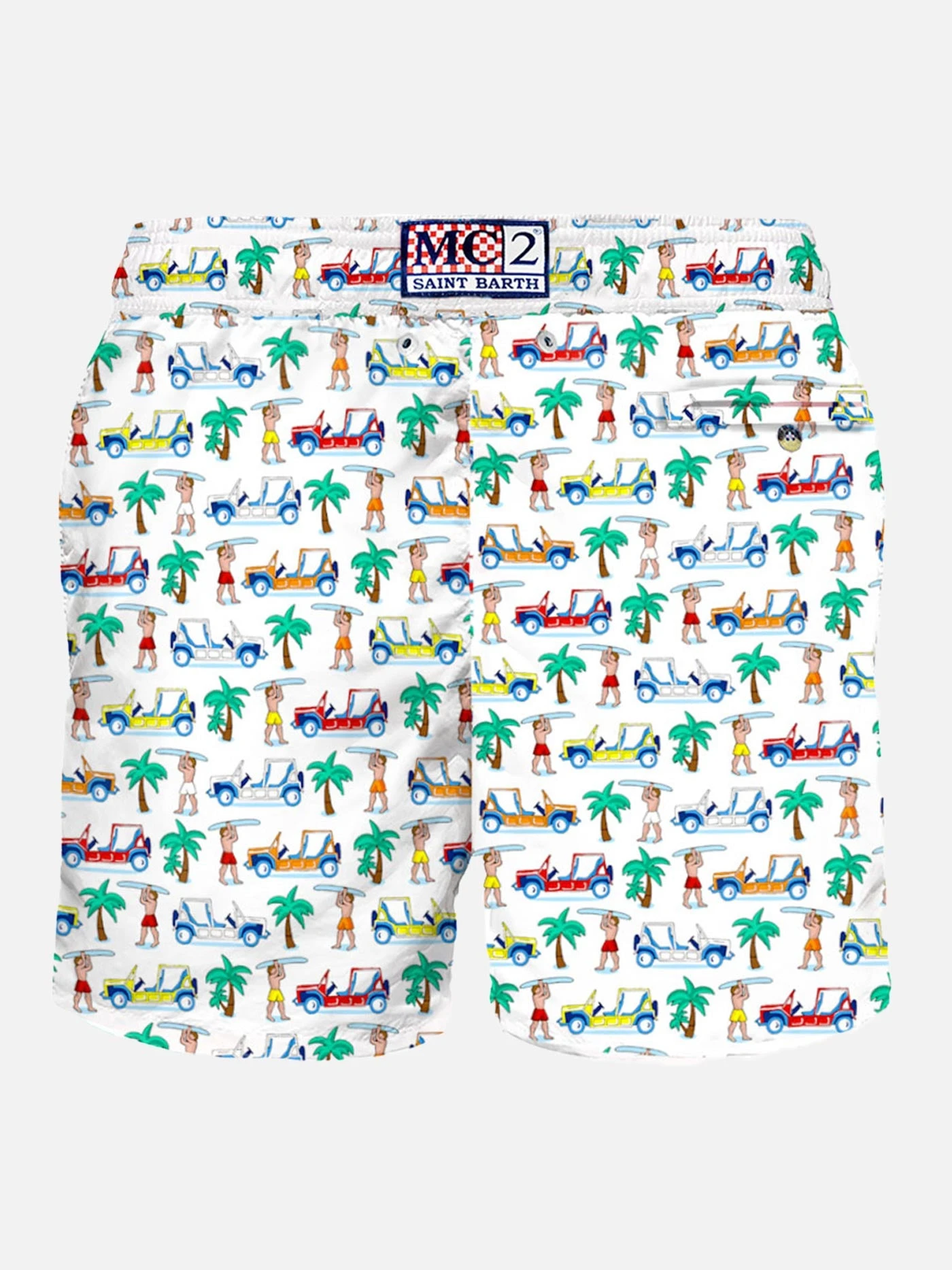 MC2 Saint Barth Man Light Fabric Swim Shorts With Surf Print