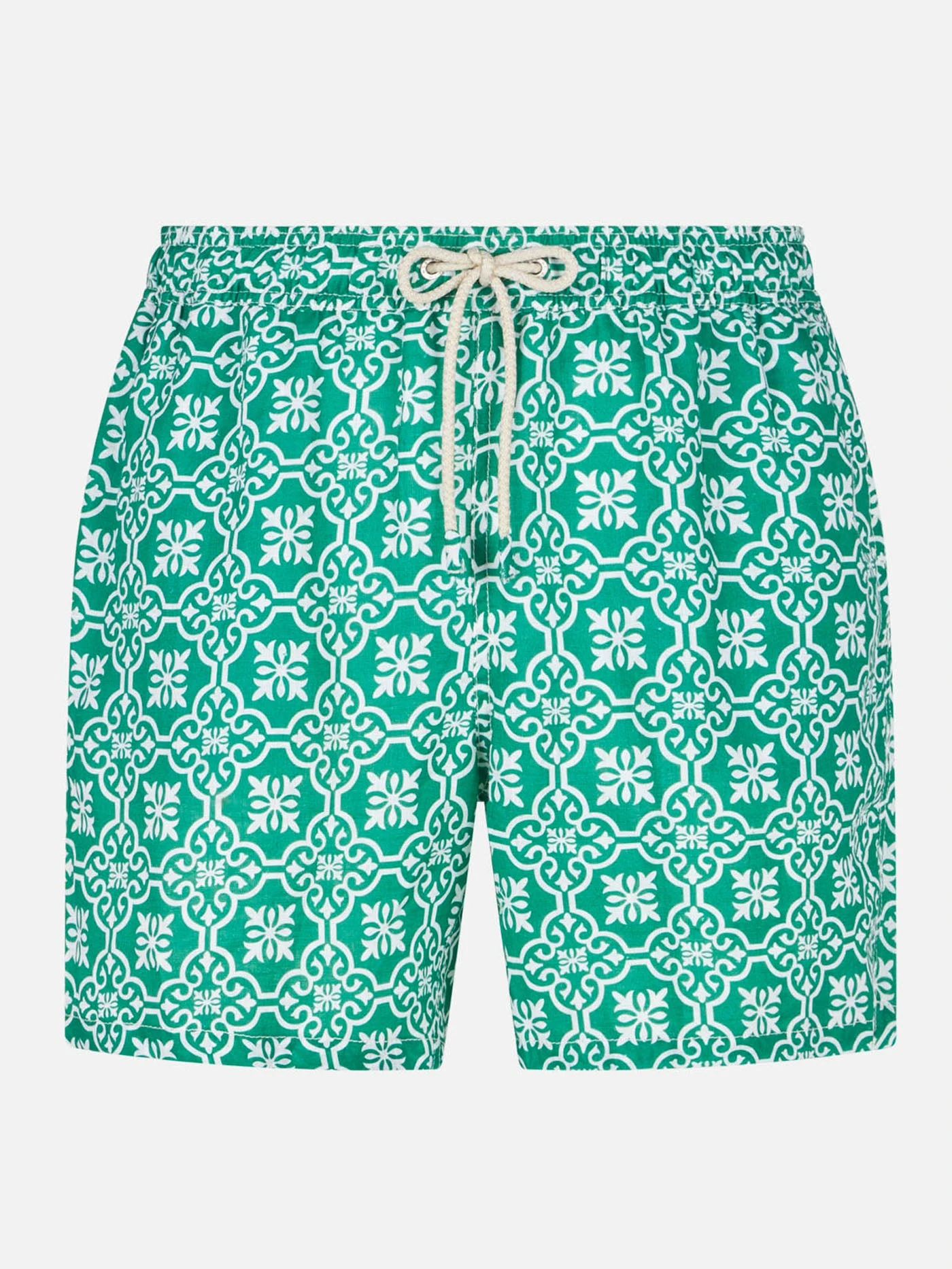 MC2 Saint Barth Man Linen Swim Short With Patterned Print