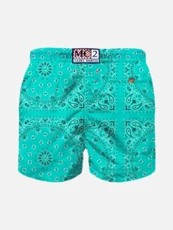 MC2 Saint Barth Boy Swim Shorts With Water Green Bandanna Print