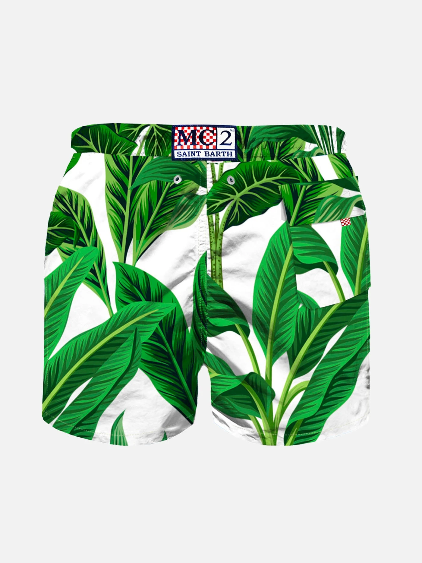 MC2 Saint Barth boy swim shorts, tropical print, quick drying, regular fit, mid-length, light net lining, elasticated waistband, drawstring fastening, back pocket with velcro.